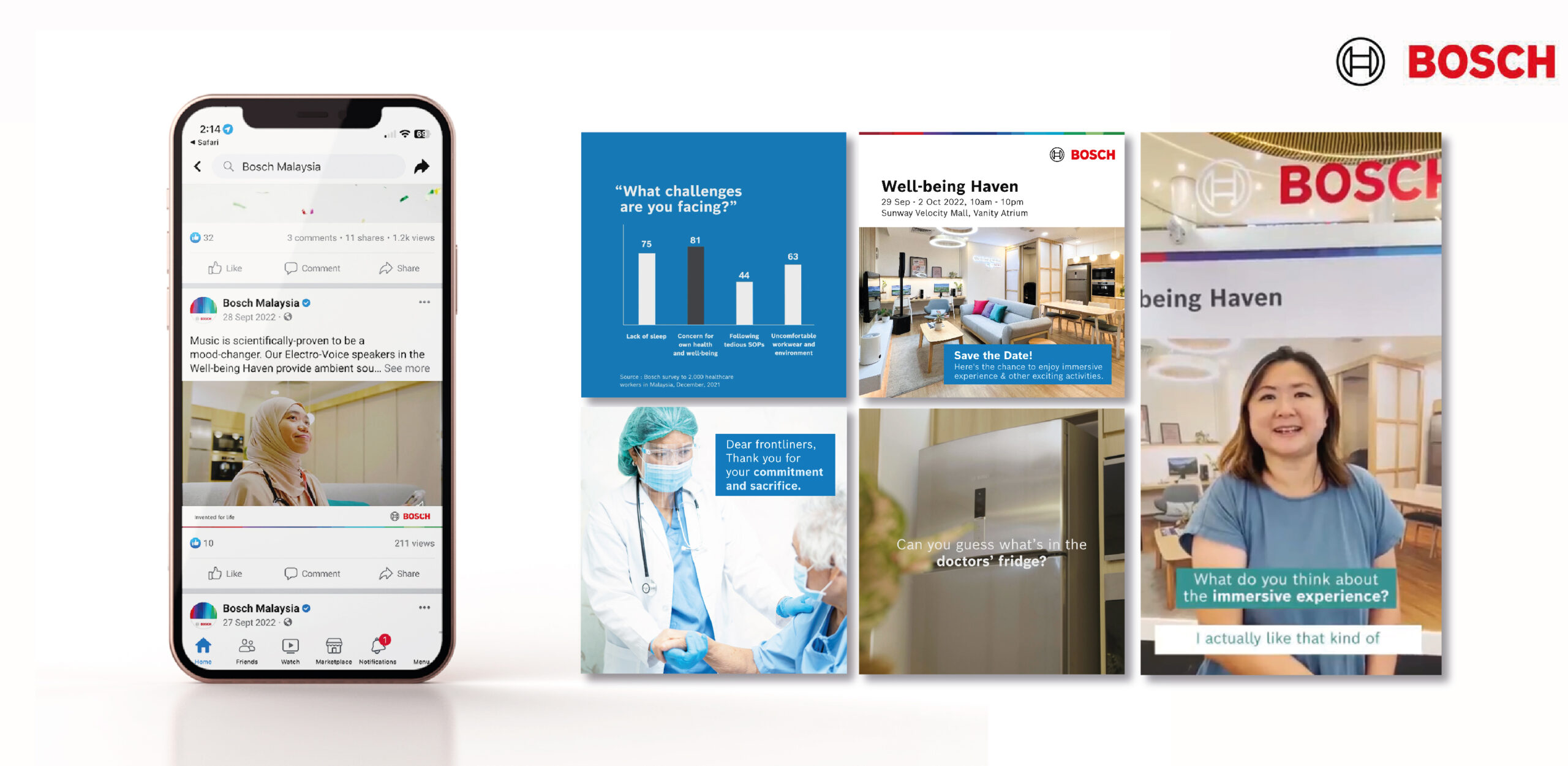 A post-pandemic campaign highlighting Bosch’s commitment to well-being and innovation. A relaxation space was built at SMCV for frontliners, equipped with Bosch appliances — from a cozy lounge to a massage room. An immersive activation at Velocity Mall recreated the tension of the pandemic, transitioning into a tranquil, Bosch-powered well-being experience.